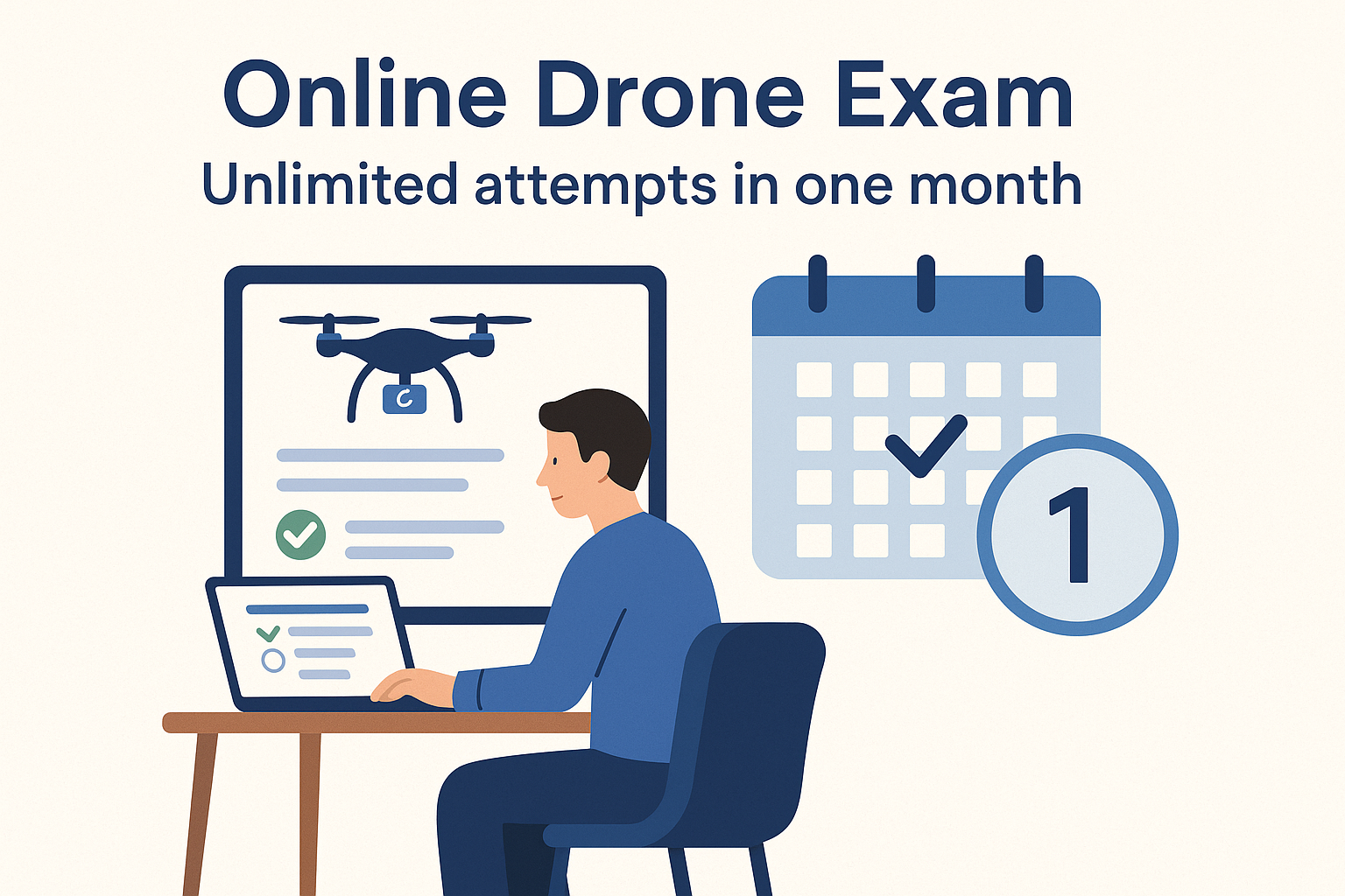 Forget the stress and cost of traveling to a test center. Droneclass allows you to attend your official exam from the comfort of your home or office. Using your webcam for secure online proctoring, our system ensures exam integrity while providing a comfortable, familiar environment. All you need is a stable internet connection to take this crucial step on your schedule.